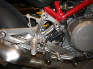 Begagnat justerbara fotpinnar och växel- bromspedal.